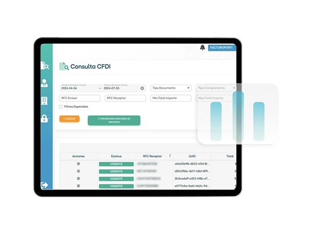 Es una plataforma digital que centraliza la recepción de facturas electrónicas (CFDIs) enviadas por tus proveedores. Desde allí, se valida automáticamente la información fiscal, estructura, reglas anexo 20, se gestiona el estatus de cada documento y se integra directamente con tus sistemas contables o ERP. Ideal para empresas con alto volumen de facturación.